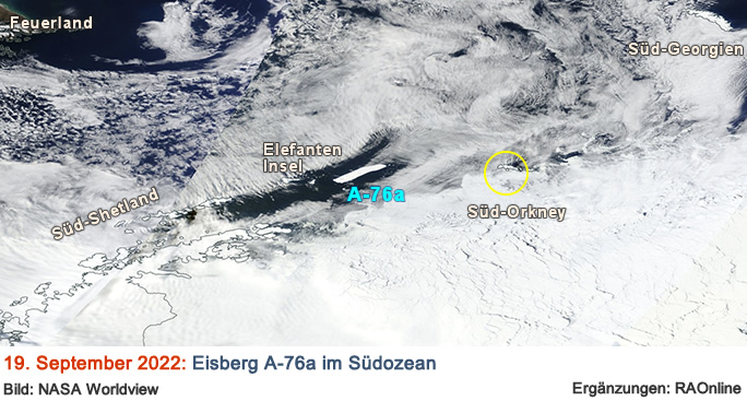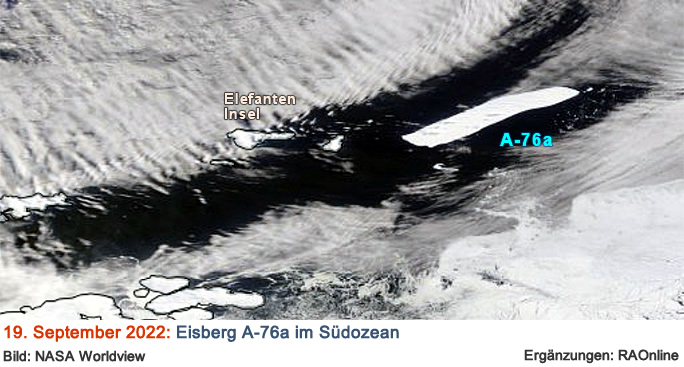 Bis im Juni 2021 war der Eisberg A76 in drei benannte Stücke (A-76A, A-76B und A-76C) zerbrochen, und er verlor daher seine Position als grösster Eisberg der Welt. Eisberg A-23A, welcher seit 1986 in den antarktischen Meeren driftete, war nun wieder grösser.