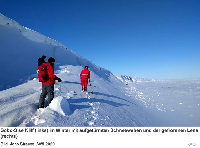 Die Arktis erwärmt sich stärker als jede andere Region der Erde. Als Folge geht der viele Tausend Jahre alte Permafrostboden durch Erosion verloren. Wie AWI-Wissenschaftlerinnen und Wissenschaftler am sibirischen Fluss Lena gemessen haben, ist das Ausmass der Erosion beängstigend: Dort bricht das Ufer jährlich um gut 15 Meter ab. Hinzu kommt, dass der im Permafrost gespeicherte Kohlenstoff den Treibhauseffekt weiter anheizen kann.