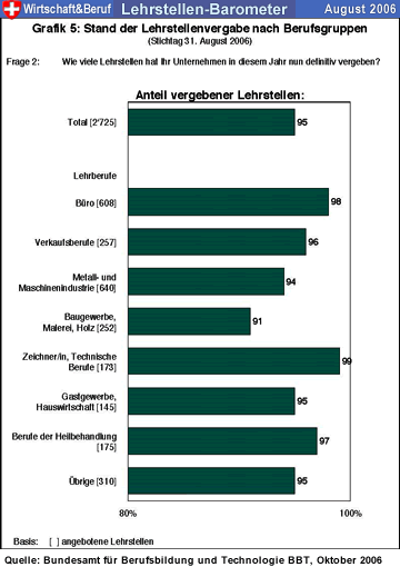 den Unternehmen sind am 31. August 2006 95% der Lehrstellen schon vergeben