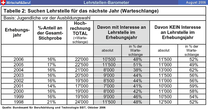Lehrstellenmarkt 2007 wechseln. Im Vergleich zu 2005, als sich 11'500 Personen