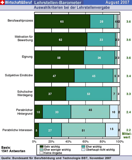 Herbst 2007 wurde erstmals die Wichtigkeit verschiedener Kriterien bei