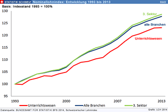 Auch in der Schweizerischen Lohnstrukturerhebung 2010 des Bundesamtes für Statistik wird auf dieses Ungleichgewicht in der Entlöhnung hingewiesen: "Nur teilweise können die Lohndifferenzen zwischen den Branchen mit unterschiedlichen Anforderungsprofilen der Stellen erklärt werden - ein grosser Teil des Unterschieds bleibt brancheninhärent." (LSE 2012, S. 10). Dies trifft insbesondere auf die Lehrberufe zu.