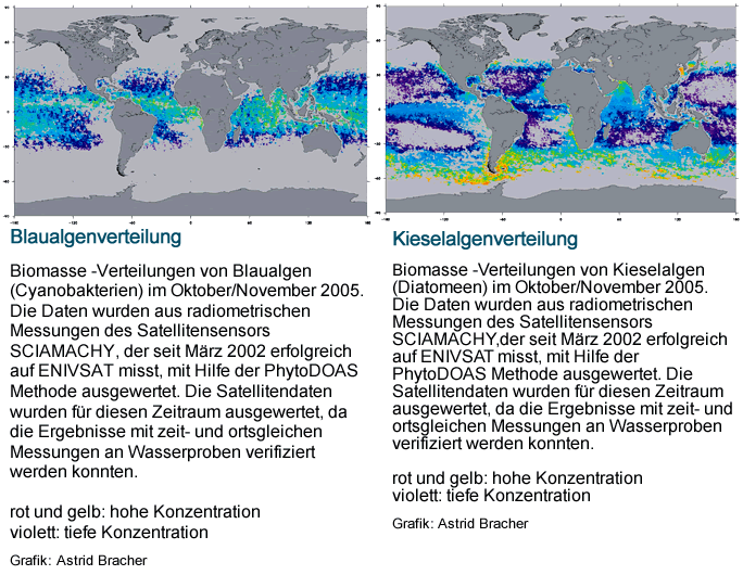 den Bildern können die Verteilungen von zwei bedeutenden Phytoplankton-Gruppen,