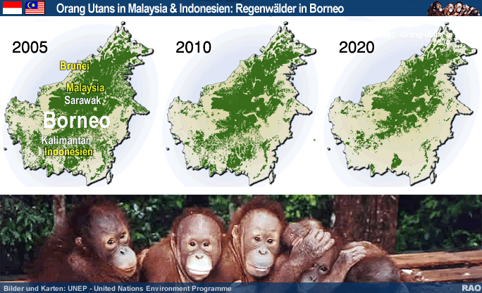 Orang Utans in Borneo (Indonesien und Malaysia)