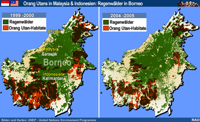 Orang Utans in Borneo (Indonesien und Malaysia)