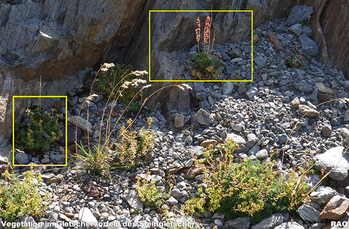 Die Vegetation in den Gletschervorfeldern ist vielfältig. Pioniervegetation, Ufergesellschaften und Quellfluren, Flachmoorgesellschaften, Rasengesellschaften, Staudenfluren und Gebüsche sowie Auenvegetation und Wald teilen sich diesen Lebensraum.