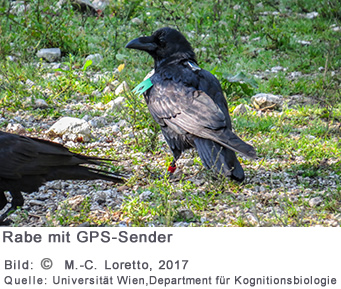 Die Wissenschaftler um Thomas Bugnyar in Österreich sowie Kollegen aus Frankreich statteten 30 Raben für einige Monate bis Jahre mit kleinen Rucksäcken aus, die stündlich die Position der Tiere mit GPS übermittelten. Photovoltaikzellen erzeugten die nötige Energie und die Daten wurden über das Mobilfunknetz versendet. Seit etwa vier Jahren können die Forscher so die Flugbewegungen von Raben über bis zu 160 Kilometern am Tag beobachten. Zusätzlich markierten sie 332 Raben individuell in Österreich und Italien mit Farbringen und Flügelmarken, um deren Anwesenheitsmuster in zwei Studiengebieten über diese Zeit zu dokumentieren.