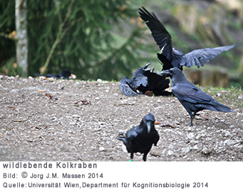 | "Weil gut in die Gruppe eingebundene Raben soziale Macht haben, können sie sich solche riskanten Manöver leisten", erklärt der Erstautor der Studie, Jorg Massen: "Dabei greifen sie gezielt bei jenen Vögeln ein, die gerade dabei sind, eine neue Allianz zu festigen und somit eine mögliche Konkurrenz werden könnten."