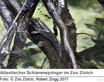 Im Gezeitenbecken des Aquariums werden Afrikanische oder Atlantische Schlammspringer (Periophthalamus barbarus) gezeigt. Dieser Schlammspringer bewohnt die Westküste Afrikas und erreicht eine Länge von etwa zwanzig Zentimetern. Im Zoo teilen sich die Schlammspringer das Becken unter anderem mit Schützenfischen. Diese gehen wohl nicht an Land, jagen aber mit ihrer Spritztechnik an Land lebende Beutetiere.