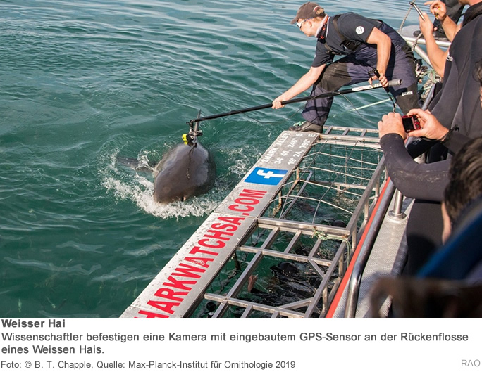 Auch in den Ozeanen schwindet die Biodiversität. Obwohl nicht genau bekannt ist, wie viele Weisse Haie es weltweit gibt, sind die Tiere als gefährdet eingestuft. Die Bestände erholen sich nur langsam, da Tiere erst Jahre nach der Geburt geschlechtsreif werden. Weisse Haie dürfen zwar nicht kommerziell gefischt werden, das Töten einzelner Tiere zur Prävention vor Angriffen ist dagegen in manchen Ländern erlaubt. "Zum Schutz der Haie ist es deswegen wichtig, ihr Verhalten besser zu verstehen, um so die ungewollte Begegnung von Hai und Mensch möglichst zu vermeiden“, sagt Wikelski.