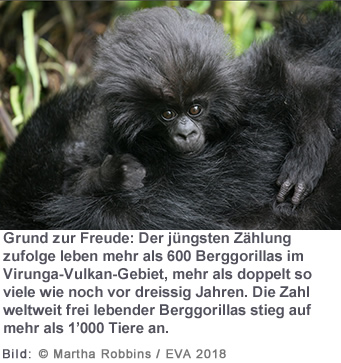 Der Anstieg zeigt auch, dass aufwändige Schutzbemühungen, einschliesslich Tourismus, Veterinärarbeit und Gemeinschaftsprojekten, tatsächlich einen positiven Einfluss auf das Überleben unserer nächsten lebenden Verwandten haben können."