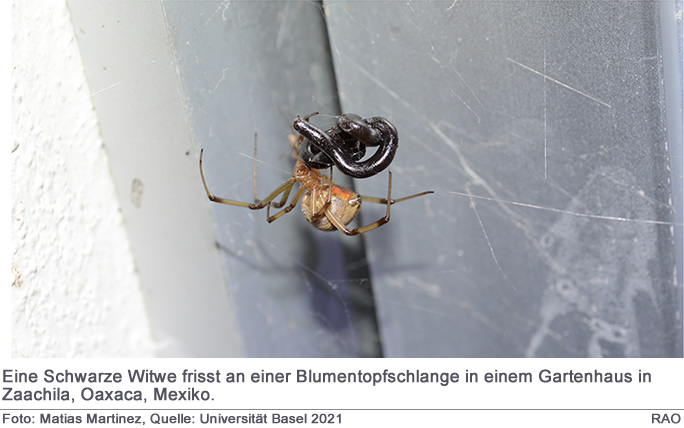 «Während die Wirkungsweise des Gifts von Schwarzen Witwen auf das Nervensystem von Schlangen bereits gut erforscht ist, fehlt solches Wissen noch weitgehend für andere Spinnengruppen. Es besteht also noch grosser Forschungsbedarf, um herauszufinden, welche spezifisch auf das Nervensystem von Wirbeltieren wirkenden Giftkomponenten dafür verantwortlich sind, dass Spinnen wesentlich grössere Schlangen durch einen Giftbiss lähmen und töten können», sagt Martin Nyffeler.