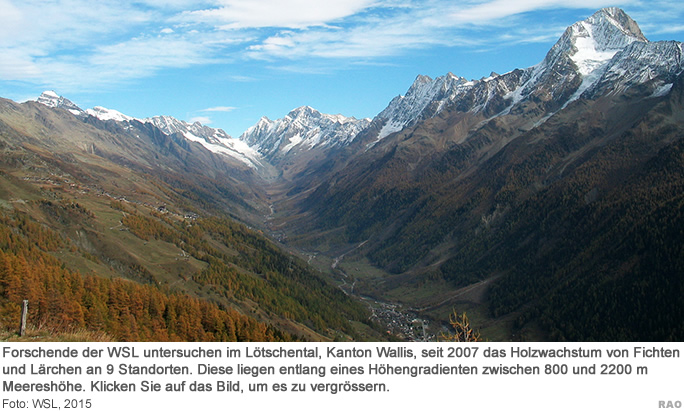 Die Erkenntnisse basieren auf Tausenden Beobachtungen von Zellen bei der Holzbildung sowie auf meteorologischen Daten an drei Standorten in den Vogesen im Nordosten Frankreichs. Zudem wurden Daten von über 50 Forschungsstandorten auf der ganzen nördlichen Halbkugel gesammelt. Ein wichtiger Standort dieses Netzwerkes ist das Schweizer Lötschental im Wallis. |