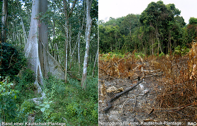 Für die Kleinbauern, welche seit Jahrhunderten die tropischen Wälder mit Wanderfeldbau für ihr Überleben nutzten, begann mit der Ausdehnung der Grossplantagen eine verhängnisvolle Entwicklung. Die Bauern pflanzten auf ihren verhältnismässig kleinen Brandrodungsflächen die Lebensmittel wie Reis, Mais und Maniok für ihren täglichen Bedarf an. Die Grossplantagen raubten ihnen ihre Lebensgrundlagen. Die Eigenversorgung war nicht mehr ausreichend gewährleistet. Die Bauern mussten sich auf den lokalen Märkten zusätzlich mit teuren Lebensmitteln eindecken. Häufig fehlte allerdings das Geld für diese Einkäufe, weil sie ohne Lohnarbeit waren. Der Betrieb und Unterhalt der Plantagen benötigt nur wenige Arbeitskräfte. Die Bauern holten aus den umliegenden Tropenwäldern auch das Brennholz zum Kochen und das Baumaterial für ihre Häuser. Mit dem Verschwinden der Wälder verloren sie die Zuversicht an ein Weiterleben in dieser Umgebung.