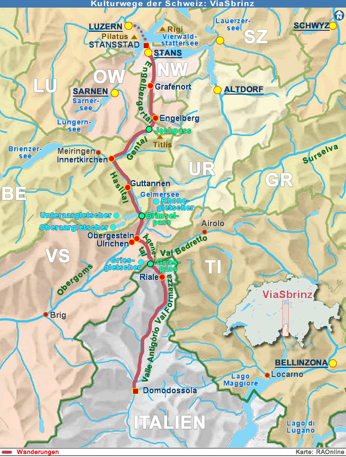 Kampf um die Handelsrouten nach Oberitalien im 14. und 15. Jahrhundert Das Wallis zerfiel im Mittelalter in die zwei Gebiete Oberwallis und Unterwallis. Das Unterwallis auch sprach damals schon französisch und wurde vom Herzogtum Savoyen beherrscht. Die savoyische Herrschaft im Unterwallis wurde von freiherrlichen Geschlechtern und gräflichen Beamten ausgeübt. Der Landesherr für das Oberwallis war der Bischof von Sitten. Zu Beginn des 15. Jahrhunderts bestand das Oberwallis aus der Bürgerschaft Sitten und weiteren freien Oberwalliser Gemeinden (den sogenannten die Zehnten des Wallis), darunter Sitten, Siders, Leuk, Raron, Visp und Brig. Bereits Mitte des 14. Jahrhunderts erhielt die Bürgerschaft von Sitten urkundlich verbrieft erste Freiheiten und Rechte. Gleichzeitigwurden die freien Oberwalliser Bauerngemeinden Teil der Landesverwaltung. Es wurde ein Rat des Landes Wallis geschaffen. Im Oberwallis konnten sich feudale Strukturen nur im unteren Teil des Tales halten. Die Interessen der Oberwalliser Gemeinden begann sich in Richtung Osten zum Gotthard hin zu verschieben. Später wurde ein Urner Landammann Schutzherr der Oberwalliser Gemeinden. Gegen Ende des 14. Jahrhunderts kam es im Oberwallis zu Wirren im Zusammenhang mit Machtgelüsten mit den von Savoyen unterstützten Adeligen. Die "freien" Oberwalliser verbündeten sich 1403 mit den Waldstätten. Die Vertreter der 8 Orte der Alten Eidgenossenschaft aus der Zentralschweiz , vor allem die Urner, wollten sich den Einfluss auf die Handelswege durch das Oberwallis ins Eschental (Italien) sichern. Die Adeligen aus dem Unterwallis erhielt Beistand aus Savoyen im Südwesten. Die "freien" Oberwalliser verbanden sich mit den Waldstätten im Nordosten. Die Säumerei und der Käsehandel aus der Zentralschweiz über das Obergoms waren auch schon im 15. und 16. Jahrhundert ein einträgliches Geschäft. Die ViaSbrinz folgt heute auf den Pfaden der damaligen Säumer. Die Berner beobachteten den zunehmenden Einfluss der Urner im Oberwallis mit Misstrauen. 1418 marschierten Berner Truppen über den Sanetschpass ins Oberwallis ein und unterstützten so die adligen Herren von Raron. Auch die Berner wollten sich den Einfluss auf die Handelswege durch das Oberwallis nach Italien sichern. 1419 kam es bei Ulrichen zu einer Schlacht. Die Plünderungen und Raubzüge hielten im Oberwallis bis 1420 an. Erst Mitte der 1420er-Jahre kam es zu einem Friedensschluss zwischen den Konfliktparteien. Der Berner Raubzug war für die Oberwalliser eine bittere Erfahrung. Die unsicheren Zeiten veranlassten Teile der Oberwalliser Bevölkerung auszuwandern.