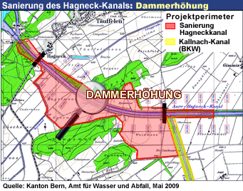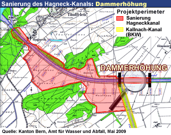 von 2005 und 2007 haben gezeigt, dass die altersschwachen Dämme des Hagneckkanal dringend saniert werden müssen. Die Dämme unterhalb der Walperswilbrücke