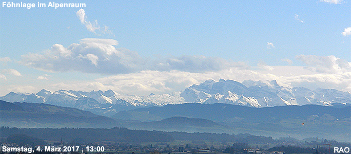 man z.B. an, dass die Luft auf der Alpensüdseite im Luv das Kondensationsniveau