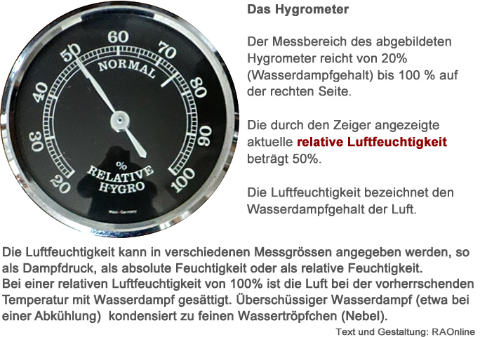 Die Werte für die Luftfeuchtigkeit bezeichnen den Wasserdampfgehalt einer Luftmasse.