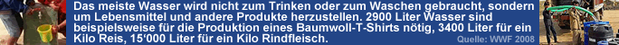 eines Baumwoll-T-Shirts nötig, 3400 Liter für ein Kilo Reis,