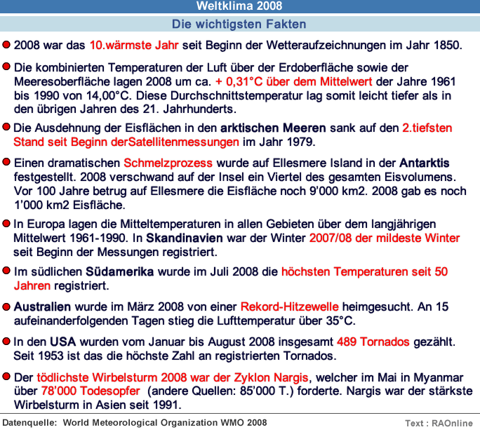 Eine Kurzfassung des Klimaberichts 2008 der World Meteorological Organization WMO steht in einer englischen Version zur Verfügung.