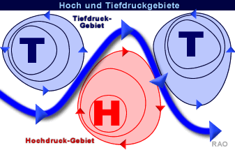 hohem Luftdruck zu Orten mit niedrigerem Luftdruckk fliesst.