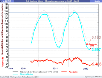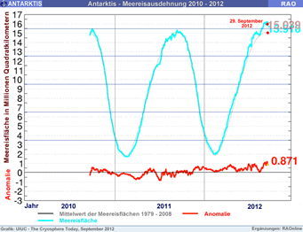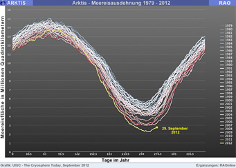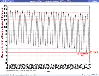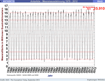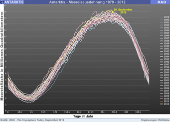 Meereisflächen in der Antarktis und in der Arktis 1979 - 2012