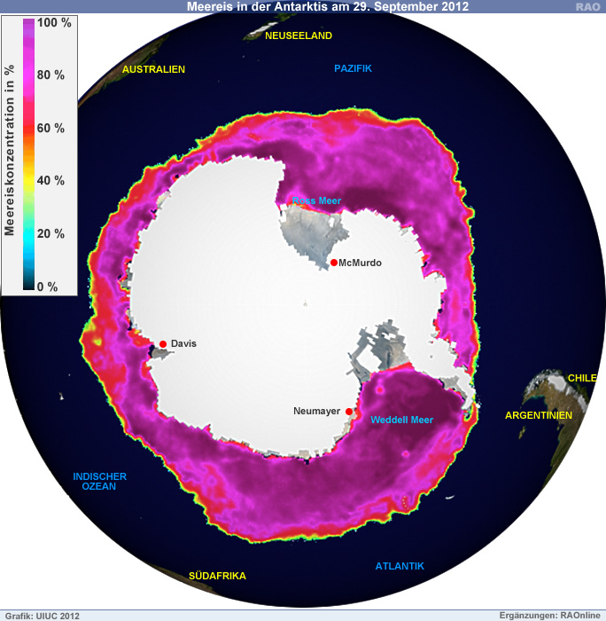 Meereiskonzentration in der Arktis und in der Antarktis 2010-2012