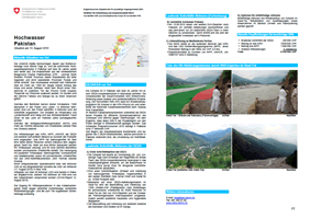 Vom 5. bis 7. August 2010 war eine dreiköpfige Abklärungsmission des Schweizerischen Korps für Humanitäre Hilfe (SKH) im Swat-Tal unterwegs. Gemeinsam mit der Schweizer Partnerorganisation Intercooperation wurden die unmittelbaren Bedürfnisse erhoben. Aufgrund dieser Erkenntnisse ist Material für provisorische Unterkünfte zugunsten von 1000 Familien beschafft worden und wird nun verteilt. Diese "Shelter-Kits" umfassen Plastikplanen, Matratzen, Decken sowie Küchenutensilien und Hygiene-Sets.