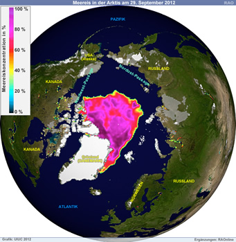 Arktis: Meereisausdehnung am 29. September 2012 |