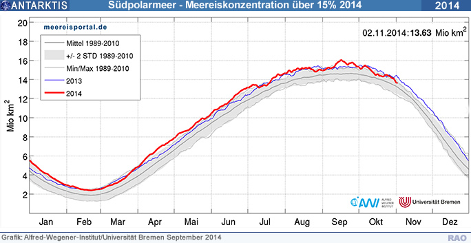 September 2014: Meereis-Entwicklung im Südpolar-Meer