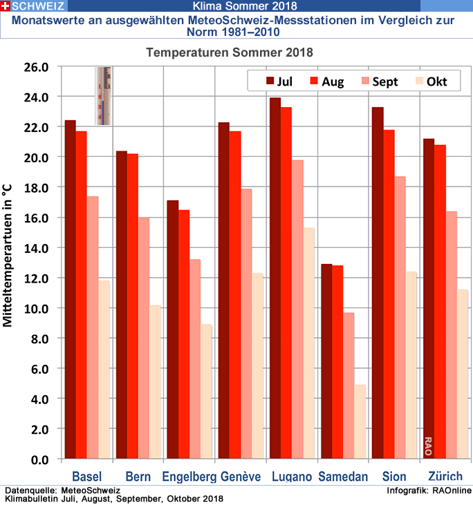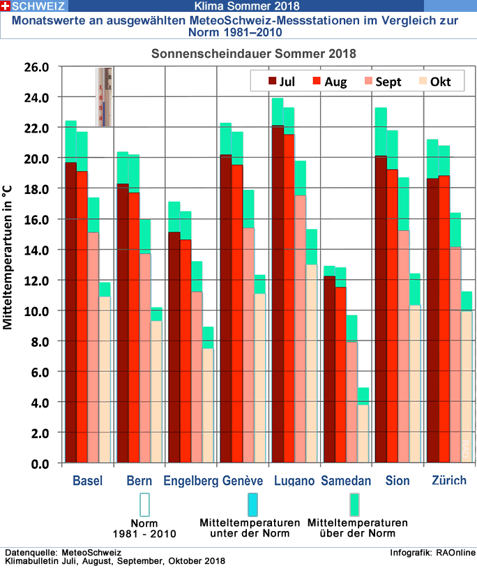 Klima in der Schweiz: Wetter 2018 - Hitzesommer 2018
