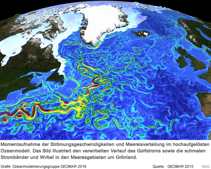 Wie sich die weiter zunehmende Schmelzwasserzufuhr zukünftig auf das Golfstromsystem auswirken könnte, untersuchen die Kieler Wissenschaftler derzeit gemeinsam mit Ozeanographen und Klimaforschern aus Hamburg und Bremen in dem vom Bundesministerium für Bildung und Forschung geförderten Verbundvorhaben RACE (Regional Atlantic Circulation and Global Change). Ein Schwerpunkt des RACE-Projekts liegt auf der Verknüpfung von Computersimulationen mit verschiedenen Messprogrammen. So sollen die Veränderungen derStrömungsverhältnisse im Nordatlantik besser bestimmt werden.