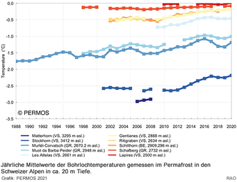 2019/2020: Erwärmung des Permafrosts in der Schweiz |