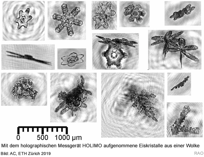 Er ist mit verschiedenen Messinstrumenten ausgerüstet, um die physikalischen Vorgänge im Inneren von Wolken zu untersuchen. Darunter ist zum Beispiel ein holographisches Gerät, das Bilder von einzelnen Niederschlagsteilchen macht. Mit diesen Aufnahmen können die Forschenden die Grössenverteilung der Teilchen messen und bestimmen, ob es sich um flüssige Tröpfchen oder um kleine Eispartikel handelt.