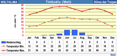 Klima-Diagramme Afrika: Senegal, Burkina Faso, Mali, Kamerun