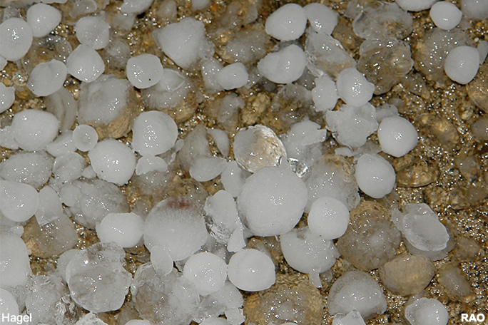 Informationen zu Hagelkorngrössen: |