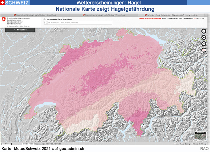 | Schweiz: Neue nationale Karte zeigt Hagelgefährdung |
