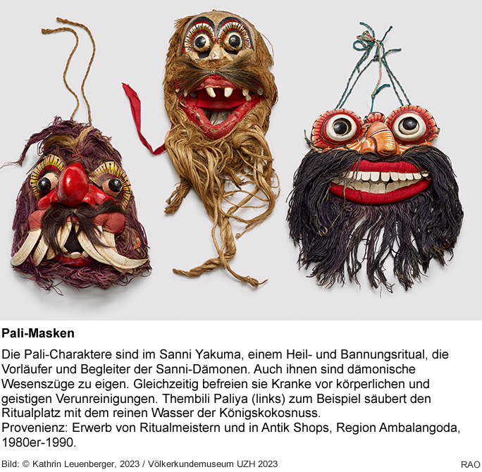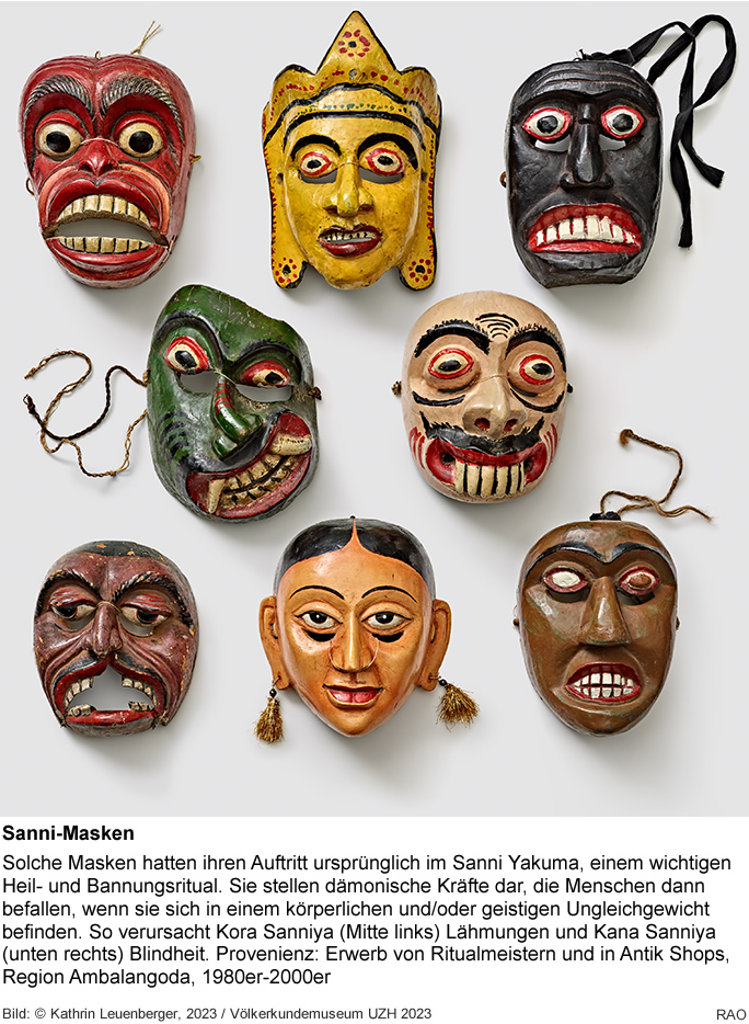 In der Ausstellung «Maskenspiel?» zeigt das Völkerkundemuseum der Universität Zürich neu erworbene Masken, Kostüme und Ritualgegenstände aus Sri Lanka. Einst eingebunden in Heilrituale und rituelle Tänze, waren solche Objekte bis 1947 auch Teil der Zürcher «Völkerschauen», an denen man «Teufelstänzer aus Ceylon» auftreten liess. Die Ausstellung möchte Raum für Dialog und Begegnungen schaffen und die eigene Geschichte kritisch hinterfragen.