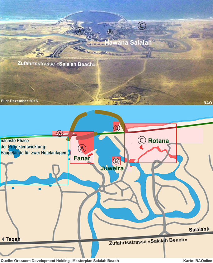 Das Projekt «Hawana Salalah» hilft mit, die Region Dhofar im Südwesten von Oman wirtschaftlich zu entwickeln. Dhofar liegt an der Grenze zu Jemen und ist von einem Wüstergürtel sowie vom Arabischen Meer umgeben. Die Region um Salalah, der Hauptstadt der Provinz (Gouvernorat) Dhofar, hat in den vergangenen Jahren eine bemerkenswerte Entwicklung erlebt. Neben neuen Überbauungen wie Hotels, Einkaufszentren, Freizeitparks, Sportstadien usw. sind westlich von Salalah in der Region des Hafens grössere Industrieanlagen entstanden. Grössere Investitionen wurden ebenfalls u.a. in den Bereichen Wohnungs- und Strassenbau sowie Hochwasserschutz getätigt.