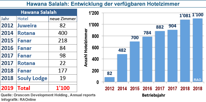 Das 2014 eröffnete «Salalah Rotana Resort» brachte weitere 400 Gästezimmer auf den Markt. Im Jahre 2017 erhöhte dieses Hotel sein Angebot um weitere 22 Gästezimmer.