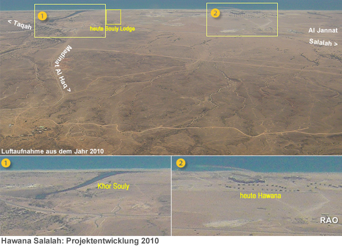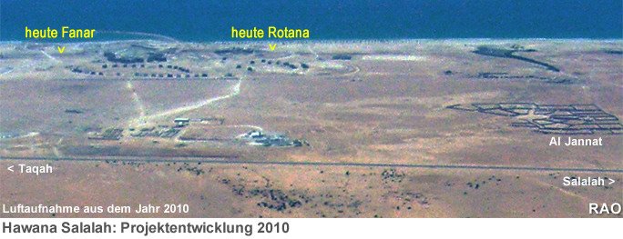 2010 konnte man durch Salalah fahren und traf nur per Zufall auf Touristen. Auch Mughsayl oder Mirbat waren meistens touristenfrei. Die meisten Taxifahrer sprachen noch nicht englisch und waren trotzdem sehr hilfsbereit. Ihre Wagen standen noch nicht abfahrbereit vor dem Hotel. Der Fahrpreis war verhandelbar. Die wenigen Touristen, welche Salalah als Reisziel ausgewählt hatten, fand man im Crown Plaza oder im Hilton. Diese beiden Hotels boten/bieten je etwa 150 Hotelzimmer an. Der Strand mit dem Namen Souly Bay war in dieser Zeit das Reich der Fischer mit ihren zahlreichen Booten und der Dromedarherden, welche unbeaufsichtigt dem Strand entlang liefen. In der Stadt kursierten Gerüchte, dass in der Region von Taqah ein riesiges Touristenresort entstehen soll.