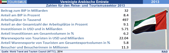 Die V.A.E. diversifizieren ihre Wirtschaft stärker und bereiten sie auf Zeit nach dem Ölboom vor. Von dieser Wirtschaftsstrategie profitierte auch der Tourismussektor. Die V.A.E. wurden zu einer Touristendestination erster Güte, wo die Preis und Leistung in einem guten Verhältnis stehen. Gäste aus Europa und in neuerer Zeit aus Osteuropa und Indien haben die Emirate als Ferienziel entdeckt.