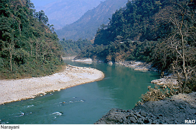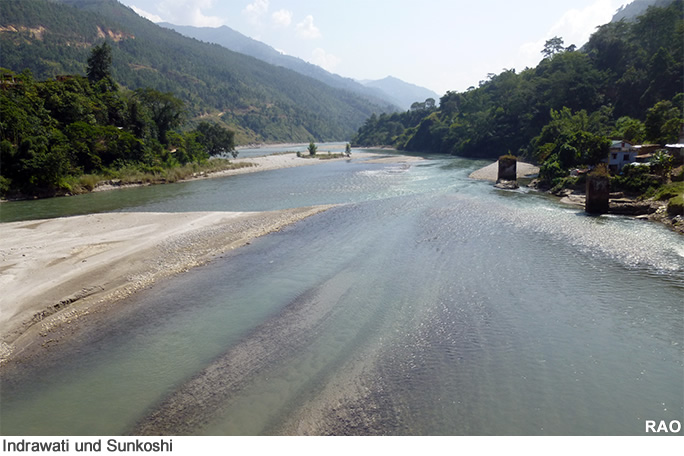 Das Schmelzwasser aus der Himalajakette, in welcher die 8 Achttausender die ganz oder teilweise auf dem Staatsgebiet von Nepal liegen, sammelt sich in zwei grossen Flusssystemen, dem Gandaki und dem Koshi Flussbecken.
