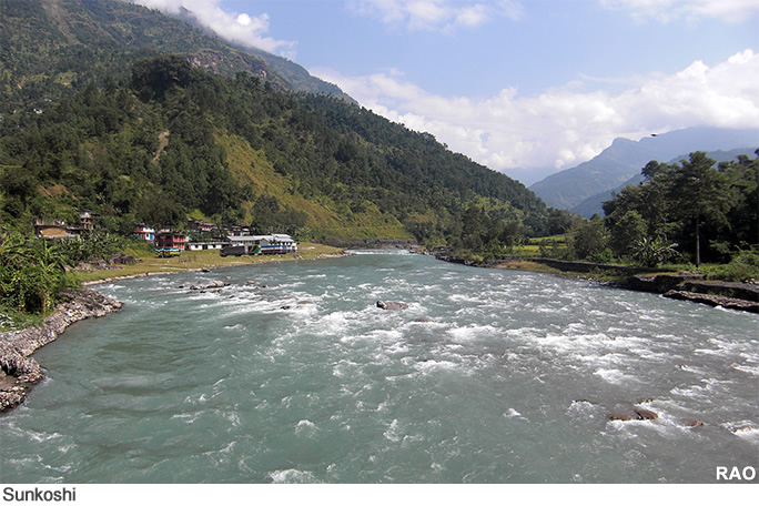 Im Osten von Nepal sammeln die Flüsse Sunkoshi, Arum und Tamur das Wasser, welches von den Achttausendern Sisha Pangma, Cho Oyu , Everest, Lhotse, Makalu und Kangchenjunga her nach Süden strömt. Im Fluss Sapta (Sapt) vereinigen sich alle Gewässer aus dem östlichen Himalaja und fliessen weiter nach Süden in den Ganges in Indien.