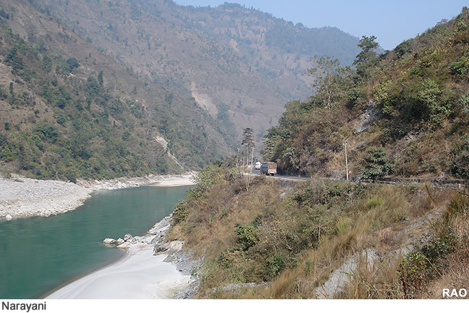 Die Flüsse Kali Gandaki, Marsyangdi und Trishuli entwässern Zentralnepal. Das Wasser der drei Flüsse vereinigt sich im Fluss Narayyani, welcher in Indirn in den Ganges mündet.