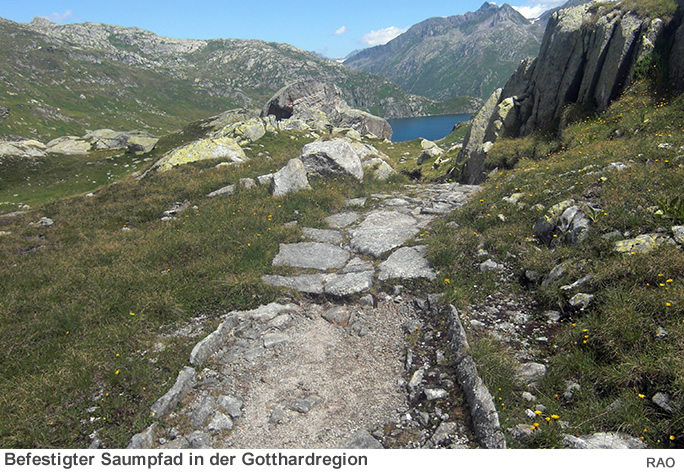 In kriegerischen Zeit zogen Soldaten über die Alpenpässe in die Schlacht. Die wichtigsten Wege im Alpenraum wurde allmählich zu befestigten Saumpfaden ausgebaut, auf welchen mit Menschenkraft oder mit Lasttieren Waren transportiert wurden. Einige Pfade dienten der Alpwirtschaft. Die Hauptrouten wurden mit den Zeit derart ausgebaut, dass sie mit von Tieren gezogenen Wagen und Karren befahren werden konnten.
