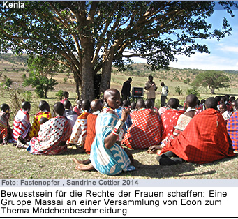 Wer diese Referenz nicht teile, werde als irrational, dumm oder gottlos abgestempelt. Dabei wird gern übersehen, dass in jeder Kultur Diebstahl, Mord oder Lüge sanktioniert werden. Christoph Antweiler fordert daher eine Kombination aus der Suche nach Universalien einerseits, und aus der Erkenntnis menschlicher Vielfalt andererseits. Diese bringt er mit folgender Formel auf den Punkt: "Jeder Mensch ist wie alle Menschen, wie einige andere Menschen, wie kein einziger Mensch." Ein selbstkritischer Universalismus legt deshalb das Gewicht auf Selbstreflexion, dies auch im Bewusstsein um die Kontextgebundenheit der jeweiligen Selbsteinschätzungen und Überzeugungen. Deshalb ist die Entweder-Oder-Mentalität nicht auf der Höhe der Zeit. Vielmehr muss die Gültigkeit der Menschenrechte in einem unaufhörlichen kommunikativen Prozess jenseits von moralisch aufgeladener Missionierung ständig neu ausgehandelt werden. Und es funktioniert doch Für ein gelungenes Vorgehen eines solchen Aushandlungsprozesses steht das Fastenopferprojekt EEON im Südwesten Kenias, welches sich gegen die Beschneidung junger Massai-Mädchen engagiert. Der Anstoss zum Projekt gab eine Primarschullehrerin, selber Massai und als junges Mädchen beschnitten. Das Projekt verfolgt dreierlei Ziele: Die Abnahme der groben Menschenrechtsverletzungen in Form von Mädchenbeschneidung, die Förderung der Schulbildung von Mädchen und die Erhöhung des Heiratsalters von jungen Frauen. Denn obwohl dies in Kenia gesetzlich verboten ist, wird die Mehrheit der Massai-Mädchen immer noch beschnitten. Diese äusserst schmerzhafte Operation, die in der Regel ohne Narkose und ohne sterile Instrumente vorgenommen wird, kann für die Mädchen das Todesurteil bedeuten. Inzwischen haben sich bereits 40 Familien im Projekt entschlossen, ihre Töchter nicht mehr beschneiden zu lassen und 140 Mädchen konnten die Schulzeit ordentlich abschliessen. Und es werden täglich mehr. Der Projekterfolg rührt daher, dass die Initiative von der Bevölkerung selbst ergriffen worden ist und, dass Fastenopfer nicht westliche Moralvorstellungen gepredigt hat. Vielmehr haben sich betroffene Mütter und Väter in einem Netzwerk zusammengeschlossen, in welchem sie gemeinsam alternative Formen von Übergangsritualen entworfen haben, welche einerseits die Kultur der Massai respektieren und andererseits die Menschenrechte der jungen Frauen nicht verletzen. Auf Augenhöhe Das Fastenopfer-Projekt aus Kenia zeigt eindrücklich: Selbst in einem Dilemma, das kaum lösbar wirkt und bei dem die Grenzen der Toleranz ausgereizt scheinen, verpflichtet der moralische Ethos zu einer angemessenen Intervention. Dabei gilt es auf einen Dialog auf gleicher Augenhöhe zu setzen, der vom Willen des gegenseitigen Verstehens und von der Fähigkeit zum Perspektivenwechsel geprägt ist. Die grosse Herausforderung besteht darin, Brücken zu bilden zwischen lokalen kulturellen Werten und universell anerkannten Menschenrechten.