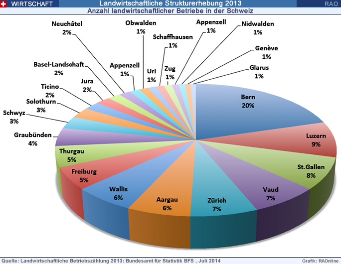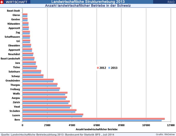 Landwirtschaftliche Betriebe 2013, Kantone
