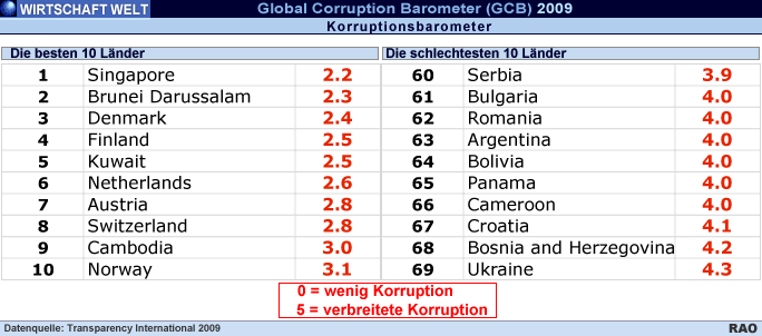 Die Antikorruptionsorganisation Transparency International hat ihren Korruptionswahrnehmungsindex (CPI) veröffentlicht. Der CPI misst den Grad der bei Beamten und Politikern wahrgenommenen Korruption. Die Mehrzahl der 180 untersuchten Länder hat auf einer Skala von 0 (als sehr korrupt wahrgenommen) bis 10 Punkten (als wenig korrupt wahrgenommen) weniger als fünf Punkte erzielt. Es ist ein sogenannter zusammengesetzter Index, der sich auf verschiedene Experten- und Unternehmensumfragen stützt. Weltweit werden umfangreiche Konjunkturpakete verabschiedet. Nur bei einer transparenten Ausgabe öffentlicher Gelder wird Verantwortlichkeit gesichert und kann der zerstörerische Kreislauf der Korruption durchbrochen werden.
