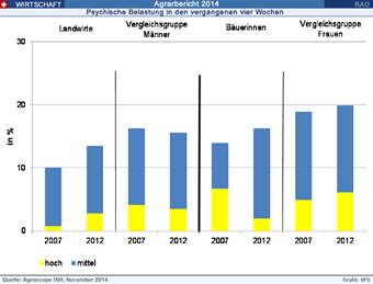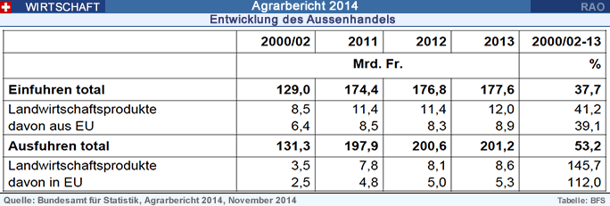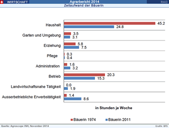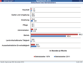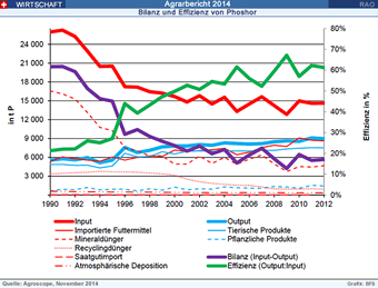 Die guten wirtschaftlichen Ergebnisse im Jahr 2013 sollten nicht darüber hinweg täuschen, dass die Schweizer Land- und Ernährungswirtschaft weiterhin vor grossen Herausforderungen steht, sagte der Direktor des Bundesamtes für Landwirtschaft (BLW), Bernard Lehmann, bei der Präsentation des Agrarberichts 2013 am 17. November 2014 in Bern. Das Umfeld der Landwirtschaft könne sich in den nächsten Jahren stark wandeln, was zweckmässige Antworten seitens der Land- und Ernährungswirtschaft erforderlich machen könne. 2013 sei wirtschaftlich für die Bäuerinnen und Bauern ein erfolgreiches Jahr gewesen, stellte Bernard Lehmann fest. Auf das neue Direktzahlungssystem, das seit dem 1. Januar 2014 in Kraft ist, habe die Landwirtschaft gut reagiert. Auch wenn die Agrarpolitik derzeit geprägt sei von der Umsetzung der Agrarpolitik 2014-2017, müsse man sich aber Gedanken machen, in welche Richtung die Landwirtschaft in der Zukunft den Herausforderungen begegnen soll. Herausforderungen sieht Lehmann insbesondere bei der Wettbewerbsfähigkeit im internationalen Kontext, bei der Nutzung der natürlichen Ressourcen sowie beim zu engen unternehmerischen Freiraum. Die Rolle der Agrarpolitik sei es, die Landwirtschaft auf dem Weg in die Zukunft zielführend zu unterstützen, betonte er. Der Agrarbericht 2014 gibt wieder einen Überblick über die Lage der Schweizer Landwirtschaft in den drei Dimensionen der Nachhaltigkeit: Ökonomie, Soziales / Gesellschaft und Ökologie. Er zeigt zudem die Veränderungen bei den agrarpolitischen Instrumenten und behandelt internationale Themen. • Gesundheit der Landwirte und Bäuerinnen Bilanz bei den Landwirten durchzogen, bei den Bäuerinnen überwiegend positiv Die Herausforderungen für die Landwirtschaft haben zugenommen. Haben sich diese Veränderungen der beruflichen Belastung auch in den gesundheitlichen Entwicklungen niedergeschlagen? Die Gesundheitsbefragung 2012 des Bundesamts für Statistik BFS zeigt, dass bei den Landwirten die psychische Belastung ("hohe" sowie "mittlere") insgesamt zugenommen hat. Dasselbe gilt auch für die Bäuerinnen. Im Vergleich zur übrigen Bevölkerung ist aber die psychische Belastung vonLandwirten und Bäuerinnen tiefer. Unter der höchsten psychischen Belastung litten die befragten Frauen der Vergleichsgruppe, den niedrigsten Anteil an "hoher" psychischer Belastung wiesen 2012 die Bäuerinnen aus. 2012 waren die Landwirte insgesamt am wenigsten von Schlafstörungen betroffen. Frauen leiden allgemein häufiger unter Schlafstörungen: So traten denn auch bei rund einem Drittel der befragten Bäuerinnen und übrigen Frauen stärkere oder leichtere Ein- und Durchschlafstörungen auf, am häufigsten bei der Vergleichsgruppe Frauen. Bei den Landwirten und Bäuerinnen sind im Zeitraum 2002 bis 2012 die "starken" Schlafstörungen etwas gestiegen, ebenso bei den übrigen Frauen. Bei der Vergleichsgruppe Männer haben diese hingegen abgenommen. Der Schmerzmittelkonsum insgesamt ("täglich" und "1- bis mehrmals pro Woche") war 2012 bei der befragten bäuerlichen Bevölkerung tiefer als jener der entsprechenden Vergleichsgruppe. Am tiefsten lag die Einnahme von Schmerzmitteln 2012 bei den Landwirten. Der Konsum von Schmerzmitteln war 2012 sowohl bei den untersuchten Männern als auch bei den Frauen höher als zehn Jahre zuvor. Das Bundesamt für Statistik (BFS) führt alle fünf Jahre eine Gesundheitsbefragung in der Schweiz durch. Befragt werden zufällig ausgewählte Personen aus der Bevölkerung, darunter auch Bäuerinnen und Landwirte. Erhoben werden unter anderem Daten zum Gesundheitszustand und zur Inanspruchnahme von Leistungen des Gesundheitssystems. Die drei letzten Erhebungen fanden 2002, 2007 und 2012 statt. • Zeitbudgetstudie Zeitaufwand von Bäuerinnen und Landwirten hat sich deutlich verringert Der wöchentliche Zeitaufwand der Bäuerinnen ging zwischen 1974 und 2011 von gut 78 auf knapp 65 Stunden zurück. Er reduzierte sich insbesondere für den Haushalt von 45 auf 25 Stunden pro Woche. Der Zeitaufwand für den landwirtschaftlichen Betrieb ging ebenfalls um rund ein Viertel zurück, von 20 auf 15 Stunden pro Woche. Bäuerinnen wendeten 2011 im Durchschnitt 2 Stunden pro Woche für landwirtschaftsnahe Tätigkeiten auf, diese wurden 1974 nicht separat ausgewiesen. Ihr Zeitaufwand für die Administration nahm seit 1974 etwas zu (+1,6 h pro Woche), ebenso für die Erziehung der Kinder (+1,7 h pro Woche). Deutlich zugenommen von 1,5 auf 8,5 Stunden pro Woche hat der Zeitaufwand der Bäuerinnen für ihre ausserbetriebliche Erwerbstätigkeit. Bei den Betriebsleitern ging der durchschnittliche wöchentliche Zeitaufwand ebenfalls stark zurück, und zwar von knapp 78 auf unter 66 Stunden. Reduziert hat sich vor allem der zeitliche Aufwand fürdie landwirtschaftlichen Arbeiten, nämlich von 66 auf rund 50 Stunden pro Woche. Auch die Administration nahm von 3,5 auf gut 2 Stunden pro Woche ab. Zugenommen um 2 Stunden auf 8 Stunden pro Woche hat hingegen der Aufwand für die ausserbetriebliche Erwerbstätigkeit. Für die Erziehung wendeten die Betriebsleiter 2011 pro Woche 3 Stunden auf, 1974 waren es mit rund 0,5 Stunden deutlich weniger. Die Forschungsanstalt Agroscope führte 1974 und 2011 Zeitbudgeterhebungen auf Landwirtschaftsbetrieben durch. Diese Erhebungen dokumentieren den mittleren Zeitaufwand für einzelne Tätigkeitsfelder und Arbeiten, welche die Bäuerin, ihr Partner (Betriebsleiter) und andere Personen auf dem Hof ausführen. 2011 nahmen 179 Bäuerinnen von bäuerlichen Familienbetrieben an dieser detaillierten Zeiterfassung teil. • Phosphor Landwirtschaftliche Phosphor-Überschüsse seit den neunziger Jahren stark gesunken Die Entwicklung beim Phosphor zeigt, dass der P-Input zwischen 1990 und 2012 um fast die Hälfte abgenommen hat, und zwar von rund 26 000 Tonnen auf etwa 15 000 Tonnen. Die Mineraldüngerzufuhr ist vor allem in den neunziger Jahren massiv zurückgegangen. Im Jahr 2012 betrug sie mit rund 4